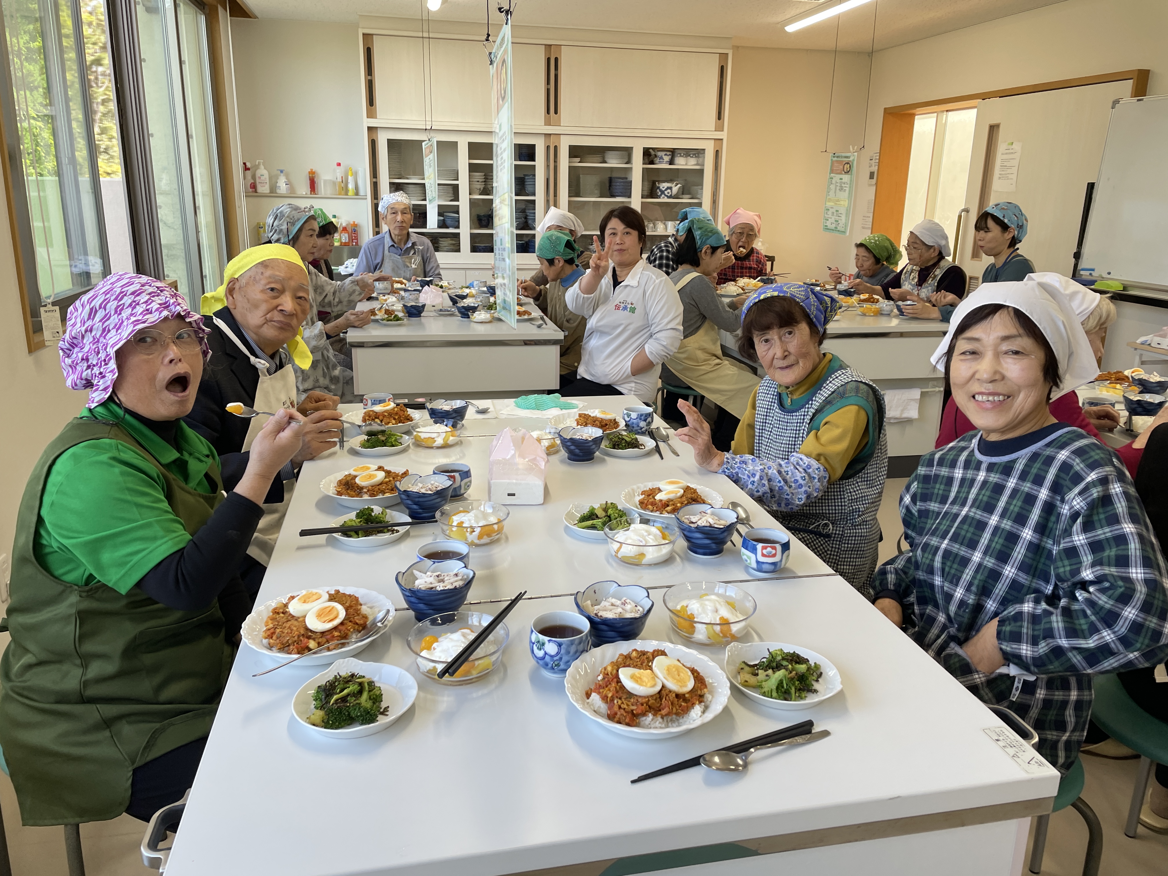 核家族化や少子高齢化が進む現代において、一人暮らしの高齢者が増加しており、食事を一人で摂る(孤食)機会が増加しています。孤食は、栄養バランスの偏りや食事量の低下を招きやすく、その結果としてフレイル(虚弱)や認知症などのリスクが高まることが指摘されています。これらを予防するためには、「栄養」「運動」「社会参加」の3つの要素を日常生活の中でバランスよく実践することが重要です。本研修会(料理教室)では、誰でも簡単に作ることができる栄養価の高い料理を学び、地域や家庭に持ち帰り実践することを通じて、高齢者の心身機能の維持・向上を図るとともに、社会参加を促進し、健康長寿を目指します。