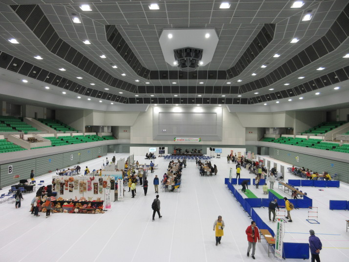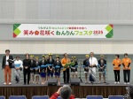 会場にはeスポーツ体験やニュースポーツ体験エリア、グルメコーナーが設けられ、屋外にはキッチンカーも並び、来場者が一日を通して“楽しむ・学ぶ・交流する”ことができるイベントとなりました。また、サブアリーナでは「福祉の魅力発信フェスタ」が同時開催され、最新の福祉機器展示や介護職員をモデルにしたポートレートパネル展示など、福祉の現場と魅力を紹介する企画が行われました。会場全体を巡るスタンプラリーも実施され、多くの方が参加し、ガラポン抽選会では景品が当たる楽しい時間となりました。