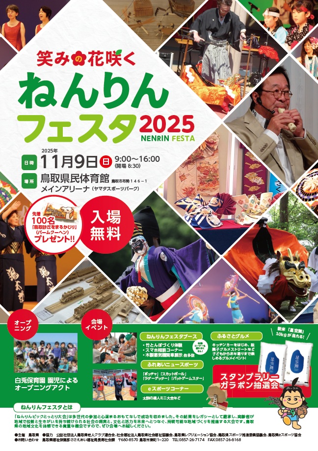 昨年開催された「ねんりんピックとっとり大会」は、多世代の参加と心温まるおもてなしで成功を収めました。その結果をレガシーとして継承し、高齢者が地域で役割と生きがいをもち続けられる社会の現実と、文化と活力を未来へとつなぐ、持続可能な地域づくりを推進する大会です。鳥取県の地域文化を体感できる貴重な機会です。