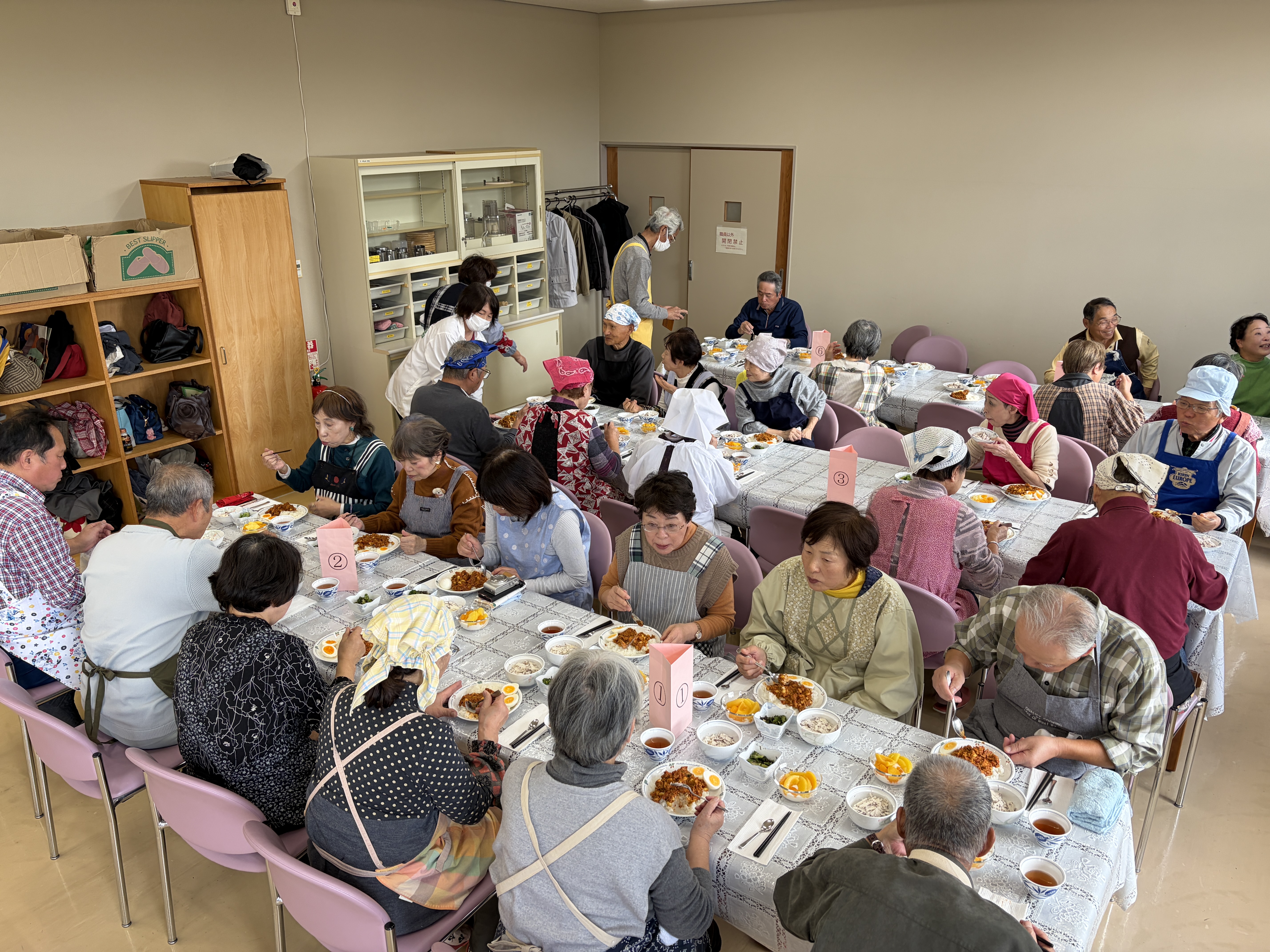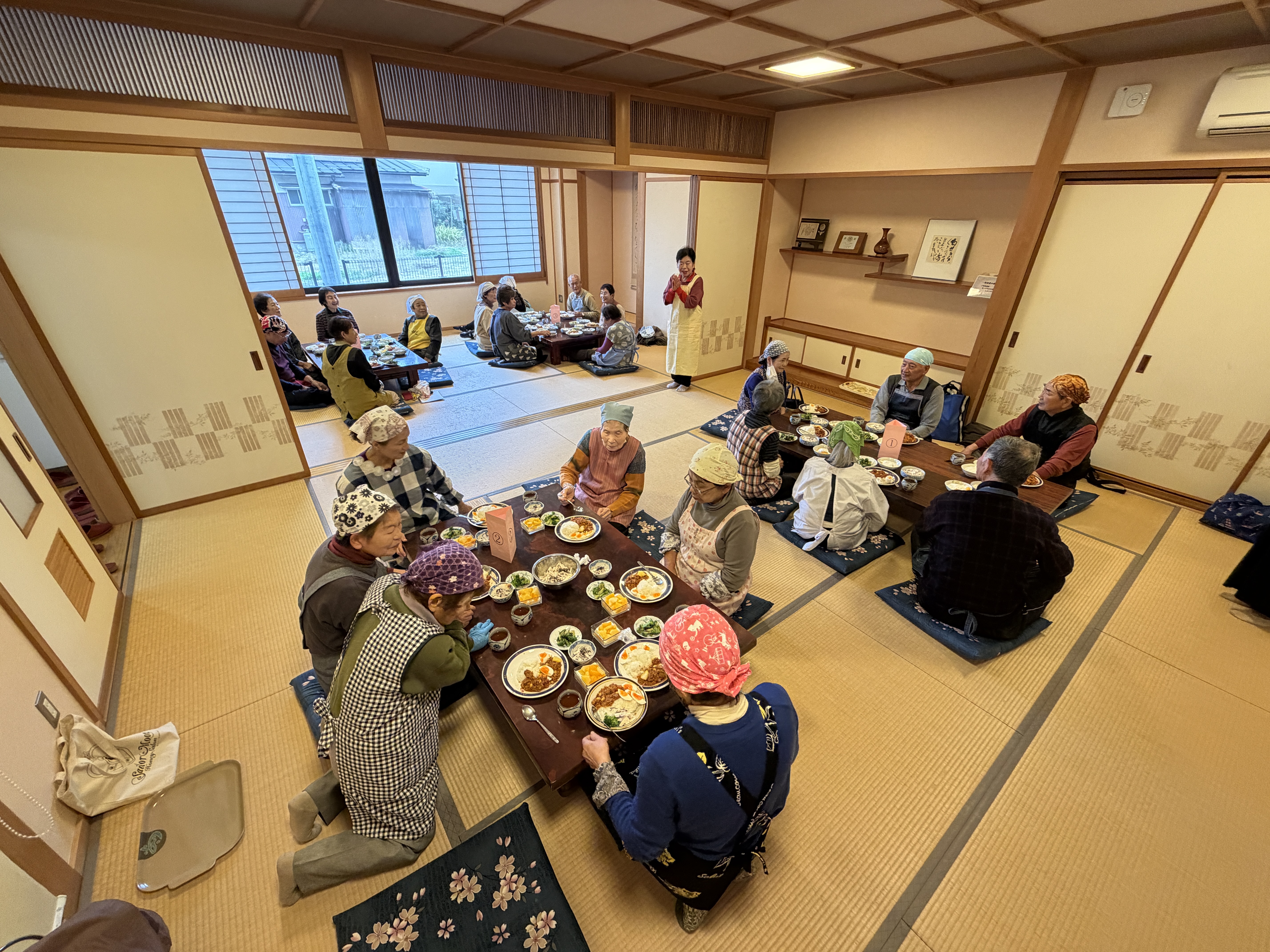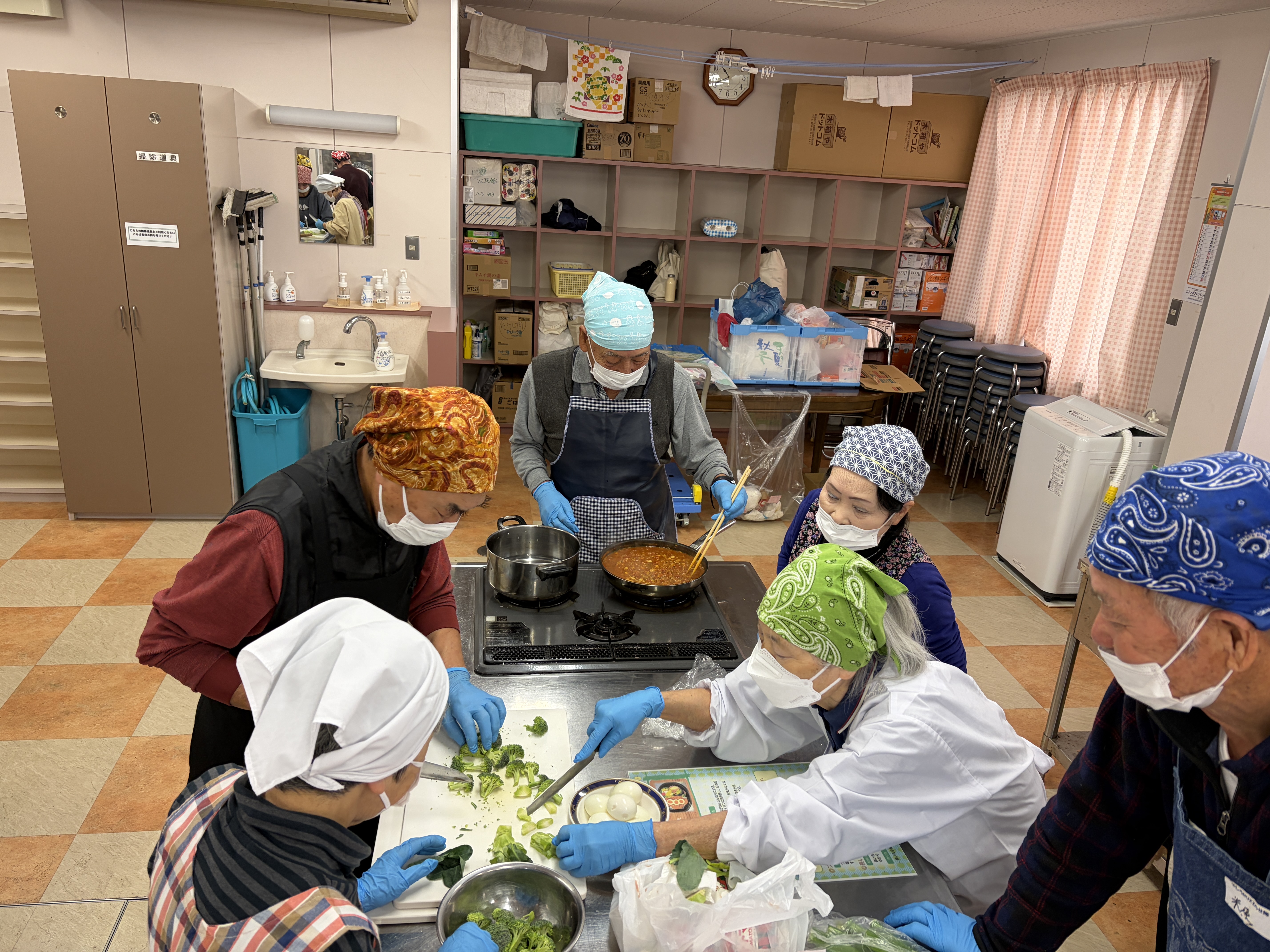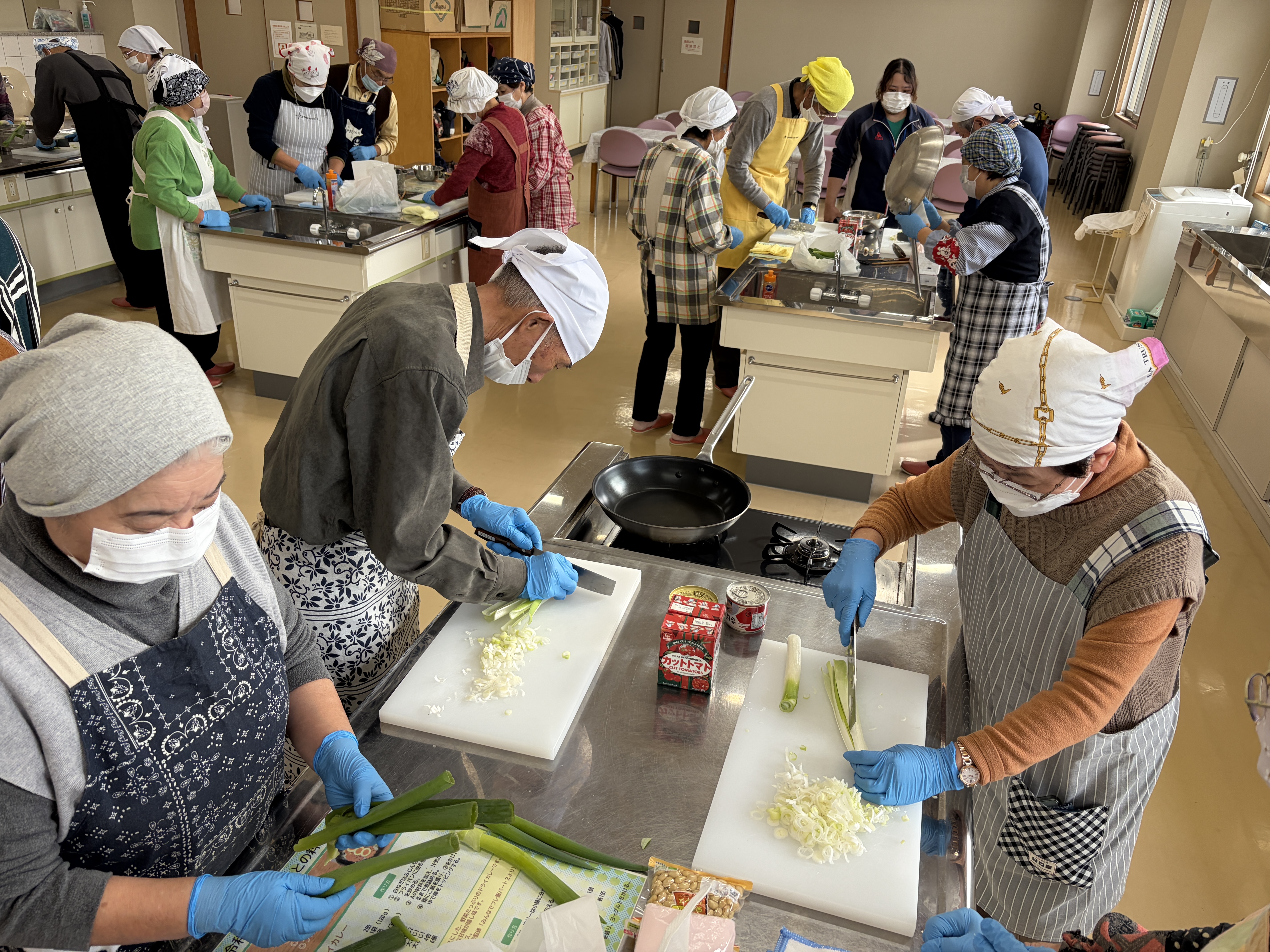核家族化や少子高齢化が進む現代において、一人暮らしの高齢者が増加しており、食事を一人で摂る(孤食)機会が増加しています。孤食は、栄養バランスの偏りや食事量の低下を招きやすく、その結果としてフレイル(虚弱)や認知症などのリスクが高まることが指摘されています。これらを予防するためには、「栄養」「運動」「社会参加」の3つの要素を日常生活の中でバランスよく実践することが重要です。本研修会(料理教室)では、誰でも簡単に作ることができる栄養価の高い料理を学び、地域や家庭に持ち帰り実践することを通じて、高齢者の心身機能の維持・向上を図るとともに、社会参加を促進し、健康長寿を目指します。