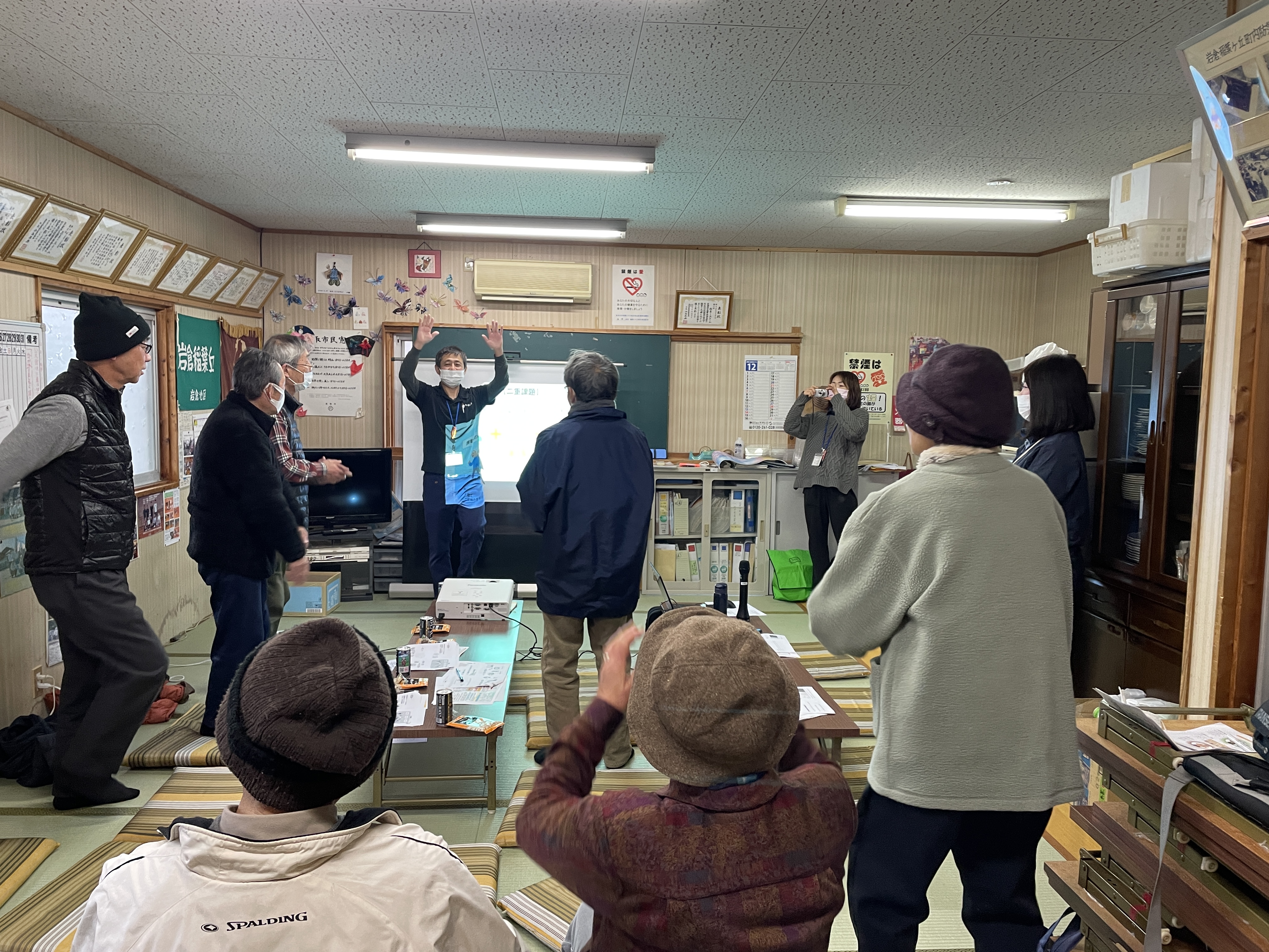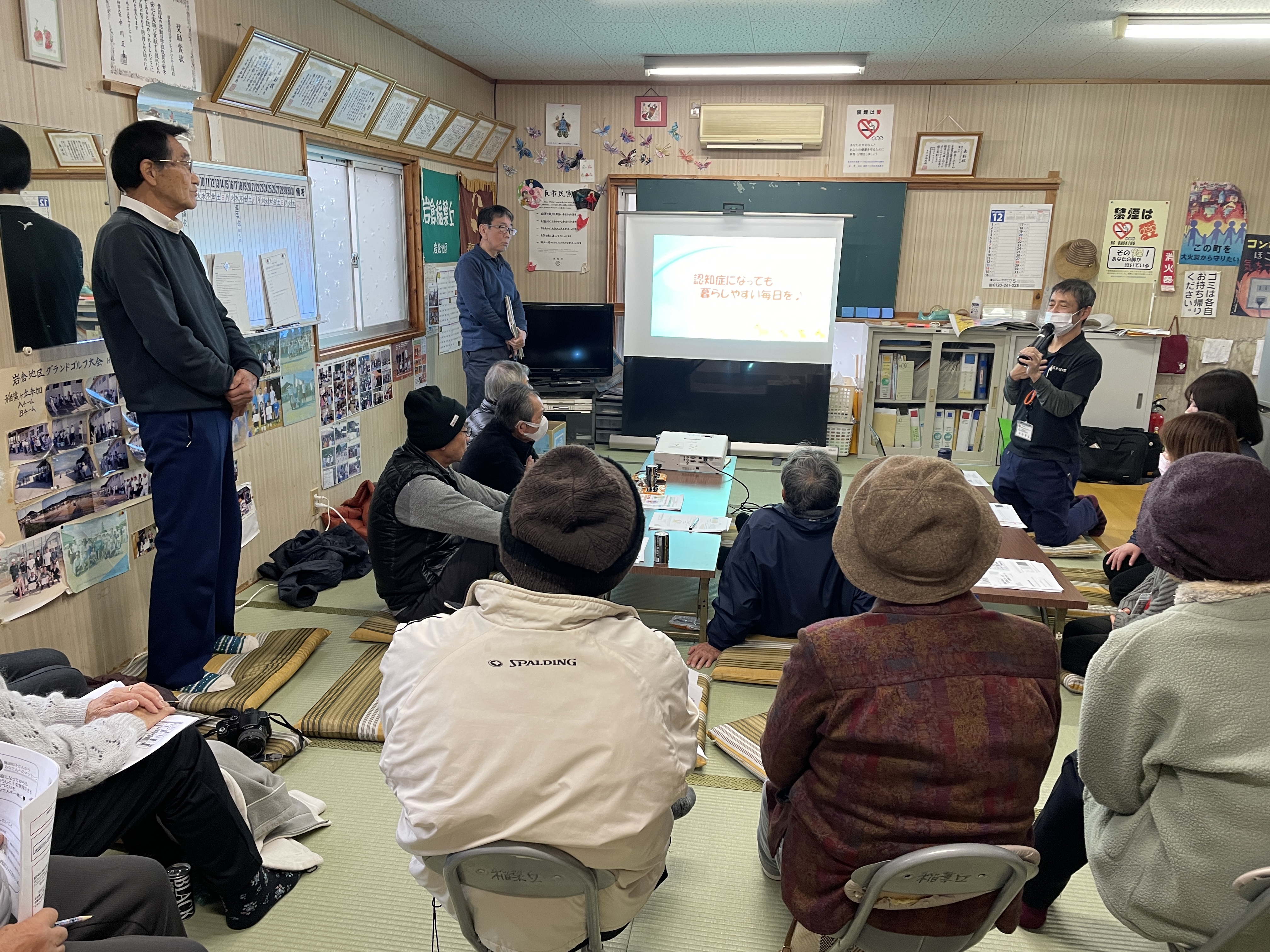 「とっとり方式認知症予防プログラム」は、「運動」「座学」「知的活動」の3つの要素を組み合わせ、楽しみながら行なえる認知症予防のプログラムです。今回のフォローアップでは、①いつもの活動に短時間でも取り入れる工夫として年4回発行している「通信」を活用することや、②「通信」を読むことで認知症について学ぶことができる(座学)こと、③運動の資料に沿って「運動」を行うことを習慣化していくことなど、いつもの活動に取り入れて、継続していくための工夫について提案して来ました。