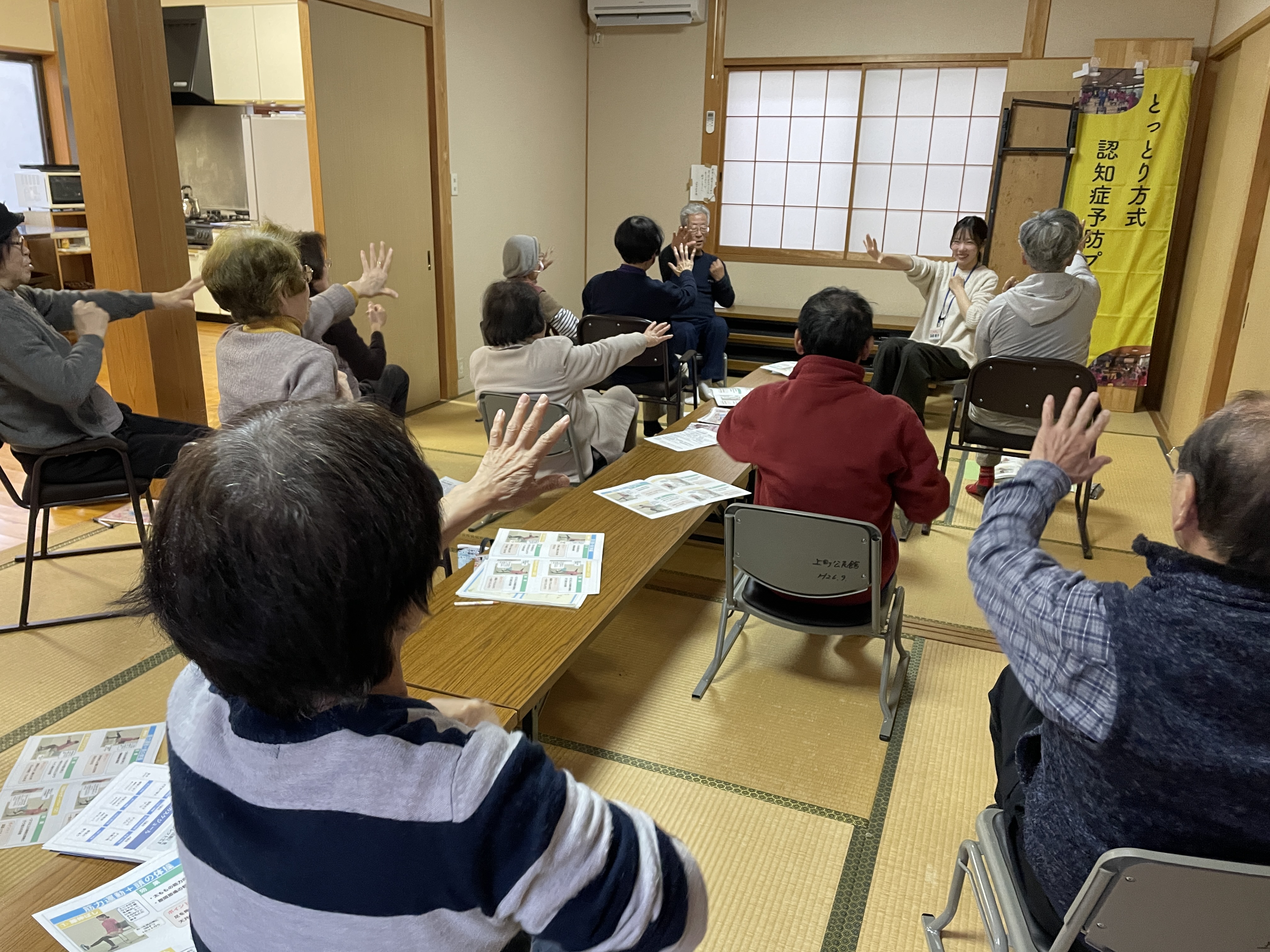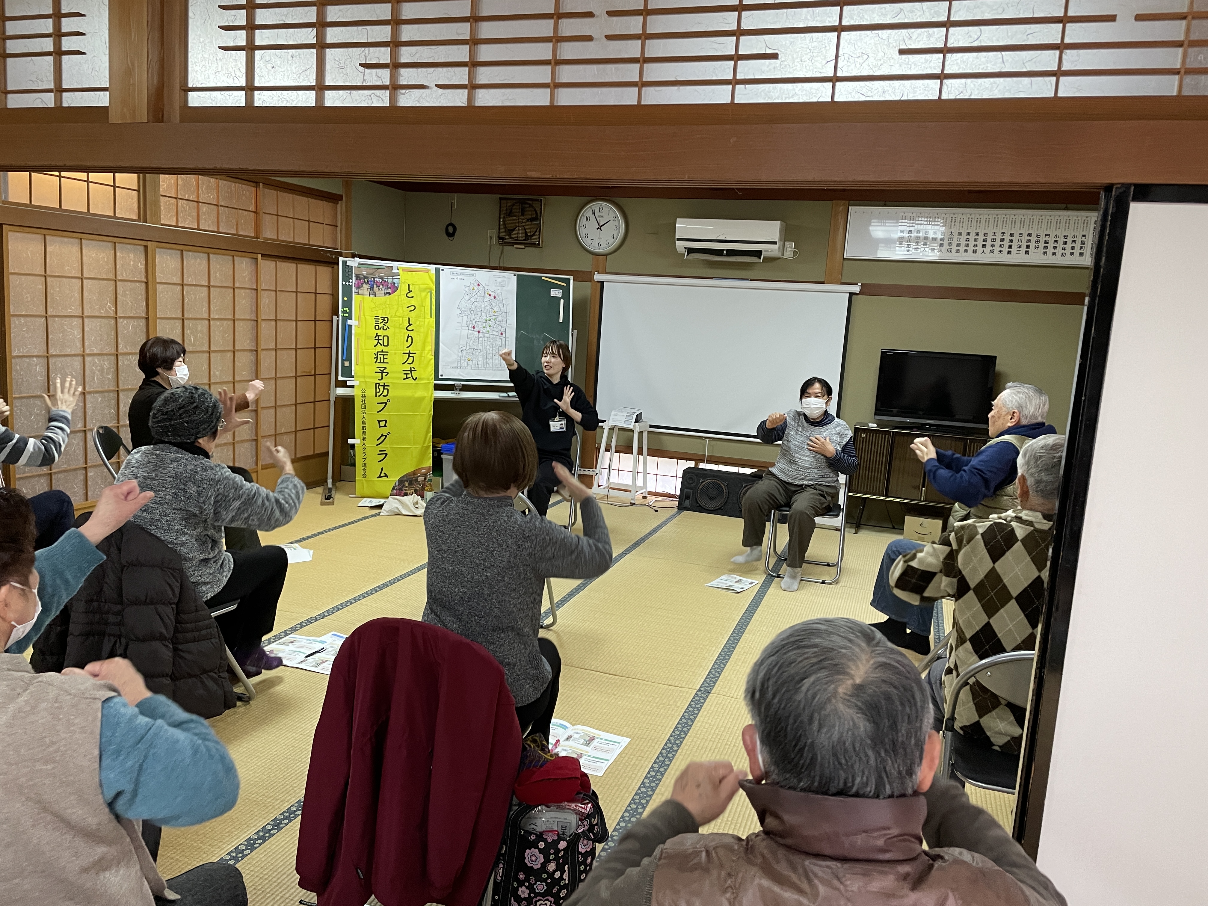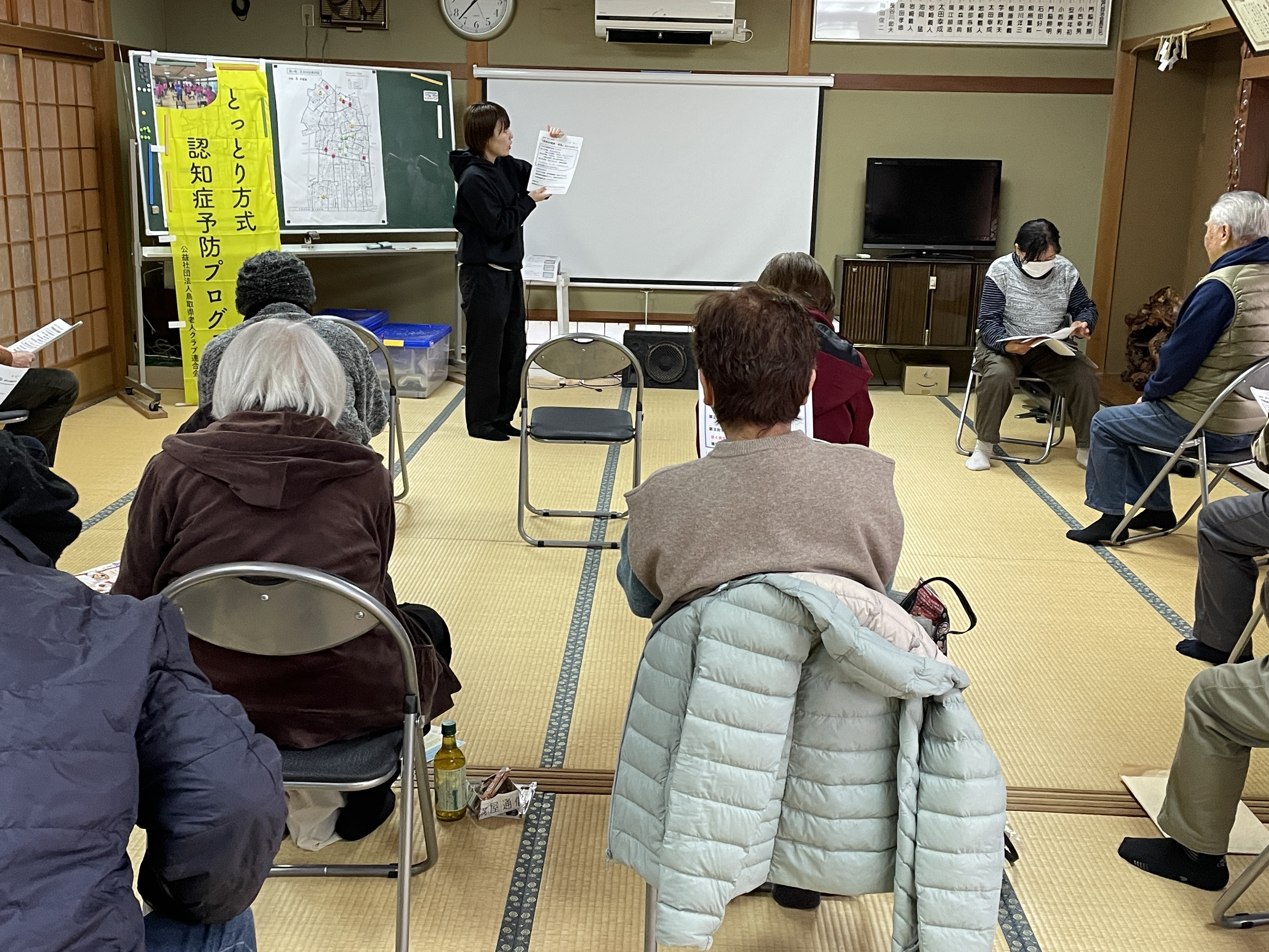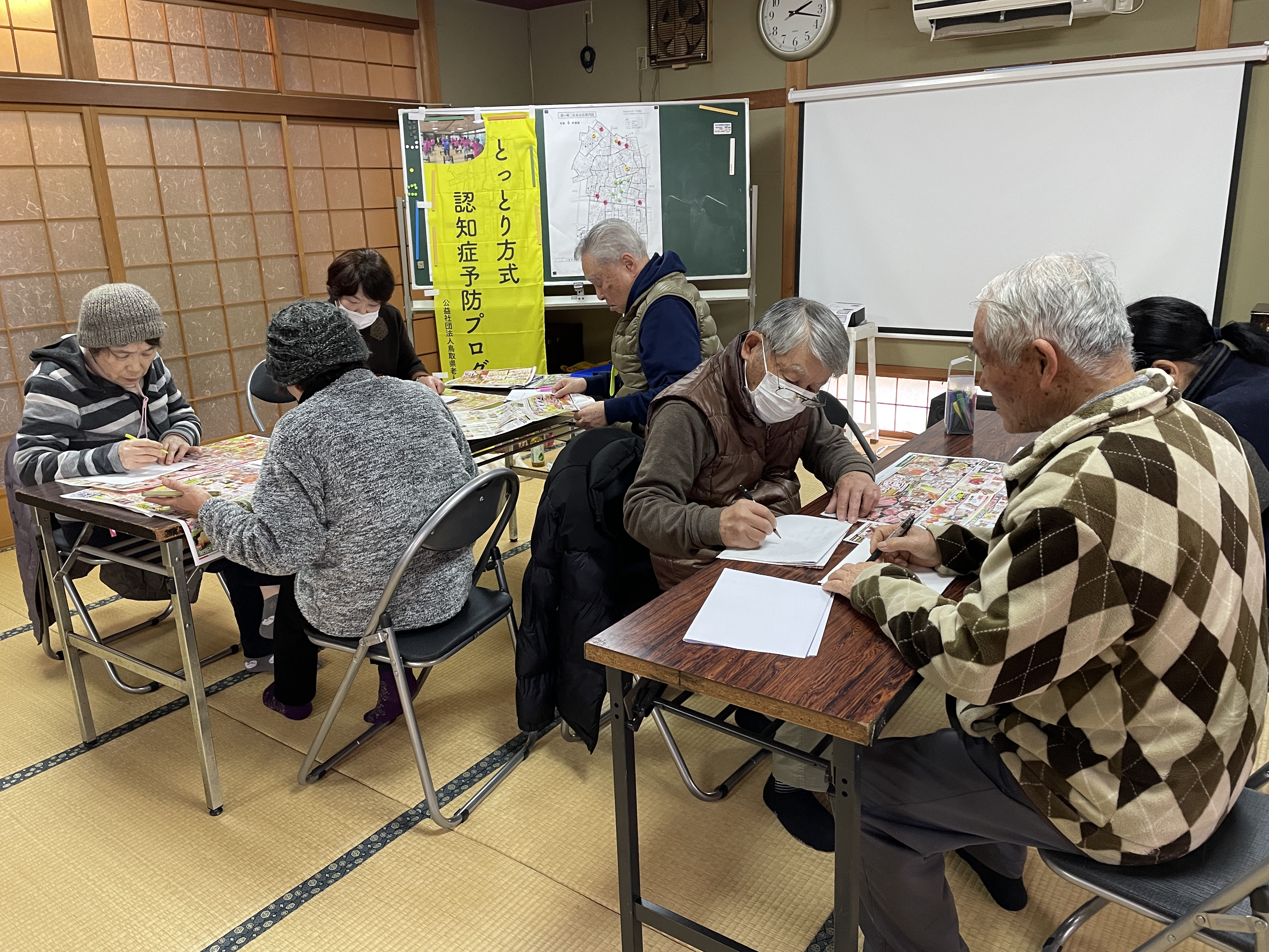 サロンやクラブ活動で、「とっとり方式認知症予防プログラム」を60分に短縮した「体験版」を作業療法士さんと一緒に、月1回、4か月間行います。