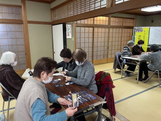 10月から始まった米子市旗ヶ崎の「東すみよし会」と「旗ヶ崎二区サロン」でのモデル地区4回目が終了しました。参加者は、60分に短縮した「とっとり方式認知症予防プログラム」の体験版に月に1回、4か月間取り組みました。今後のサロン活動で継続して取り組めるよう、配布した資料に沿って丁寧に行うことを心掛け、知的活動に必要な物は、各自持参していただき、家にある物で楽しい活動ができることを実感していただきました。また、「運動」では、参加者に「進行・見本役」を務めてもらい、資料さえあれば自分たちでも行なえることを体験していただきました。代表の方から「2月のサロン活動に参加する時も、資料を持って来てください」とみなさんに案内があり、引き続き「とっとり方式認知症予防プログラム」を活動に取り入れていこうという意気込みを感じました。短時間でも良いので、「座学」「運動」「知的活動」の3つの要素を組み合わせて行い、認知機能や身体機能の改善につなげていきましょう。