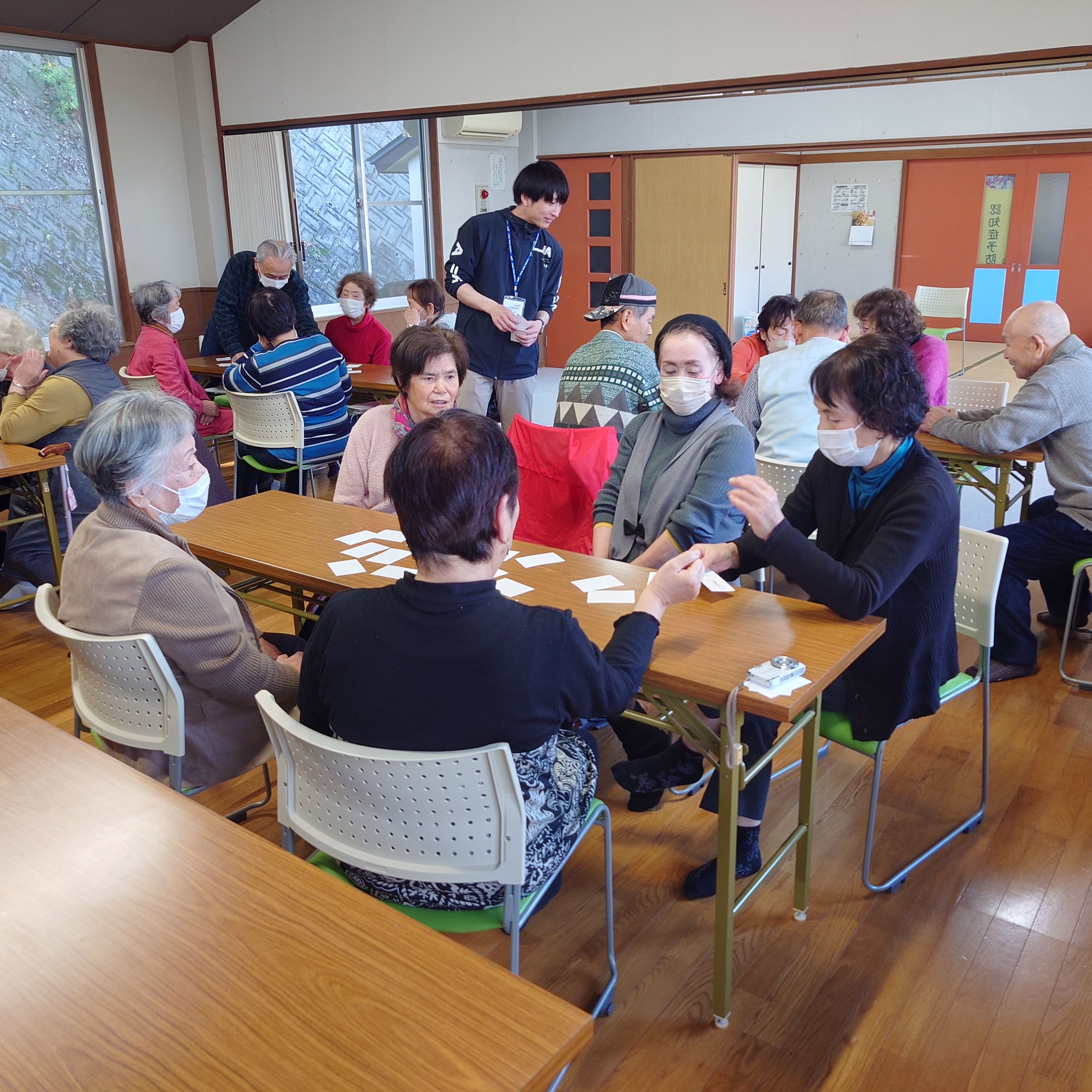 11月19日、米子市真誠会福米支え愛センターで体験会を開催しました。参加者は、「座学」「運動」「知的活動」を組み合わせた一連のサイクルを60分に短縮した簡易版の「とっとり方式認知症予防プログラム」に取り組みました。「運動」では、1つひとつの動きを資料に沿ってゆっくりと行いました。「知的活動」の折りたたみ新聞紙という活動では、みなさん足指を上手に使って小さく折りたたんでいました。「足指を使うことで、転倒防止に繋がる。」と講師さんからアドバイスをいただきました。クラブ活動に参加し、みなさんと楽しむことが、1番の認知症予防になります。今回の体験会が、今後の新開若葉会の活動が増えるきっかけになればうれしく思います。